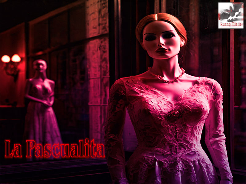 Kisah La Pascualita berawal dari tragedi keluarga. Menurut cerita, putri Pascuala Esparza meninggal tragis pada hari pernikahannya akibat gigitan laba-laba Black Widow yang mematikan. Setelah kematiannya, sebuah manekin yang menyerupai sang putri tiba-tiba muncul di etalase toko. Detail wajahnya begitu ekspresif, lengkap dengan bulu mata tebal dan tatapan berkaca-kaca, membuat banyak orang percaya bahwa itu adalah jasad putri Pascuala yang diawetkan demi mempertahankan kecantikannya.
